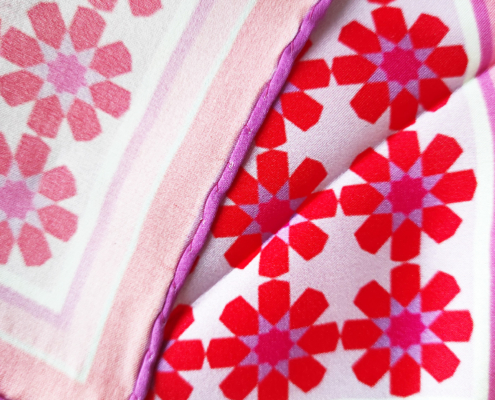 12 mome Saten İpek kumaşlarımız eşarp, şal, fular, mendil, bandana, metraj, pareo, papyon baskılarında tercih edilmektedir.